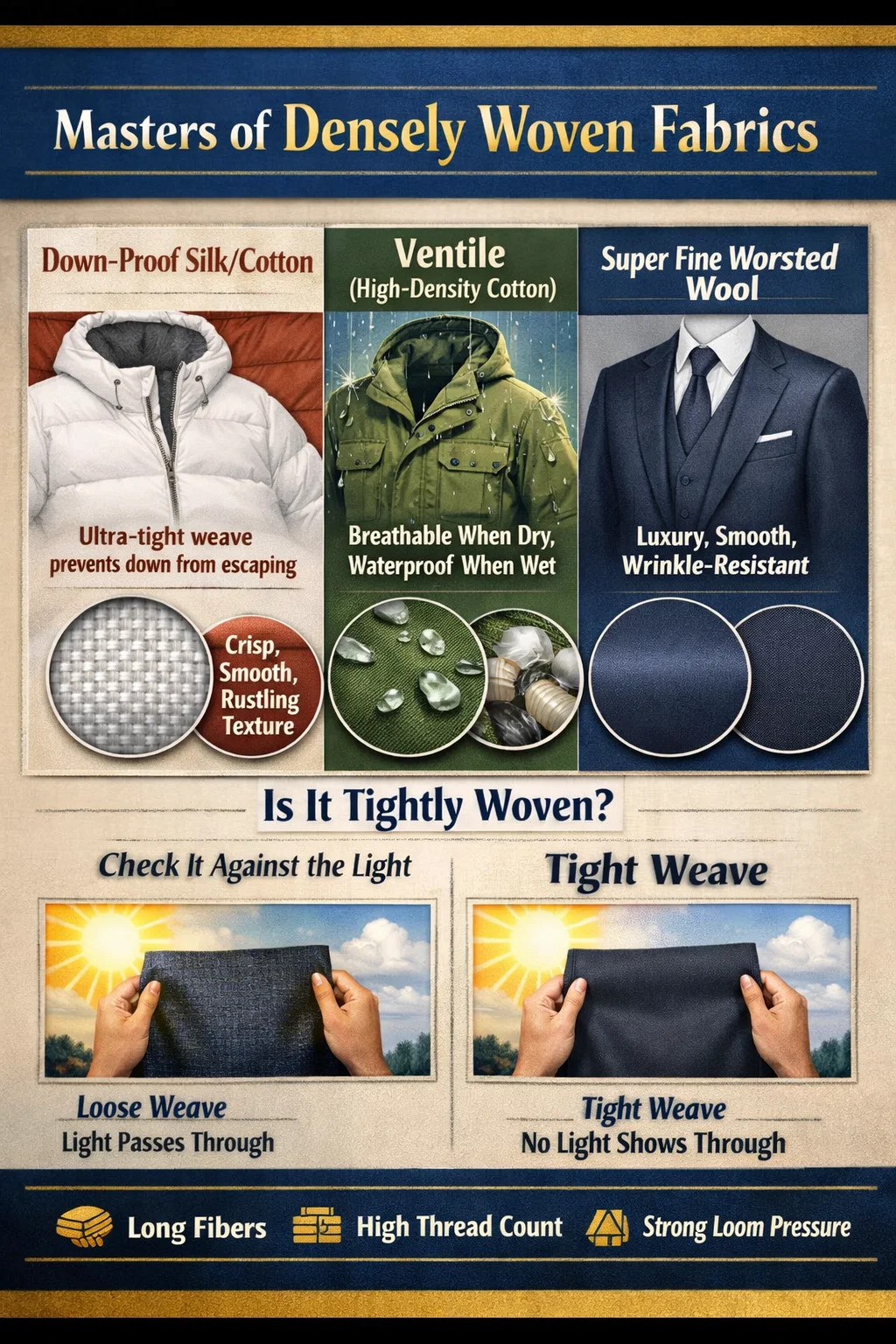 世界の密集度に関して言えば、 織物 「高密度」の定義は、防水性、防風性、または究極の滑らかさのいずれを目的とするかによって異なるため、単一の絶対的なチャンピオンは存在しません。